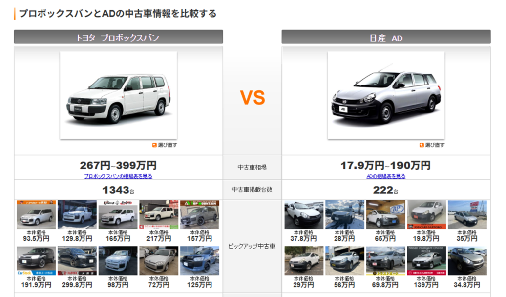 商用バンの定番としてよく比較されるのが、 トヨタ・プロボックスと日産・ADバン。
